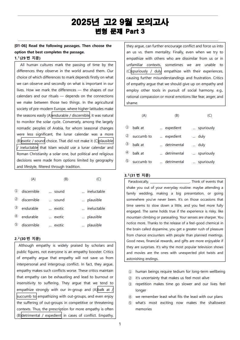 | 2025년 고1 9월 전국 연합 모의고사 변형 문제 Part 3 (0) | 2025.09.09 |
