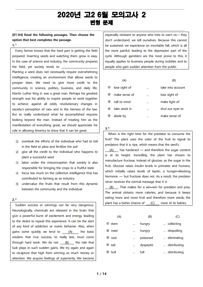 최상의 2020년 고2 6월 전국 연합 모의고사 변형 문제 2 를 선보입니다.