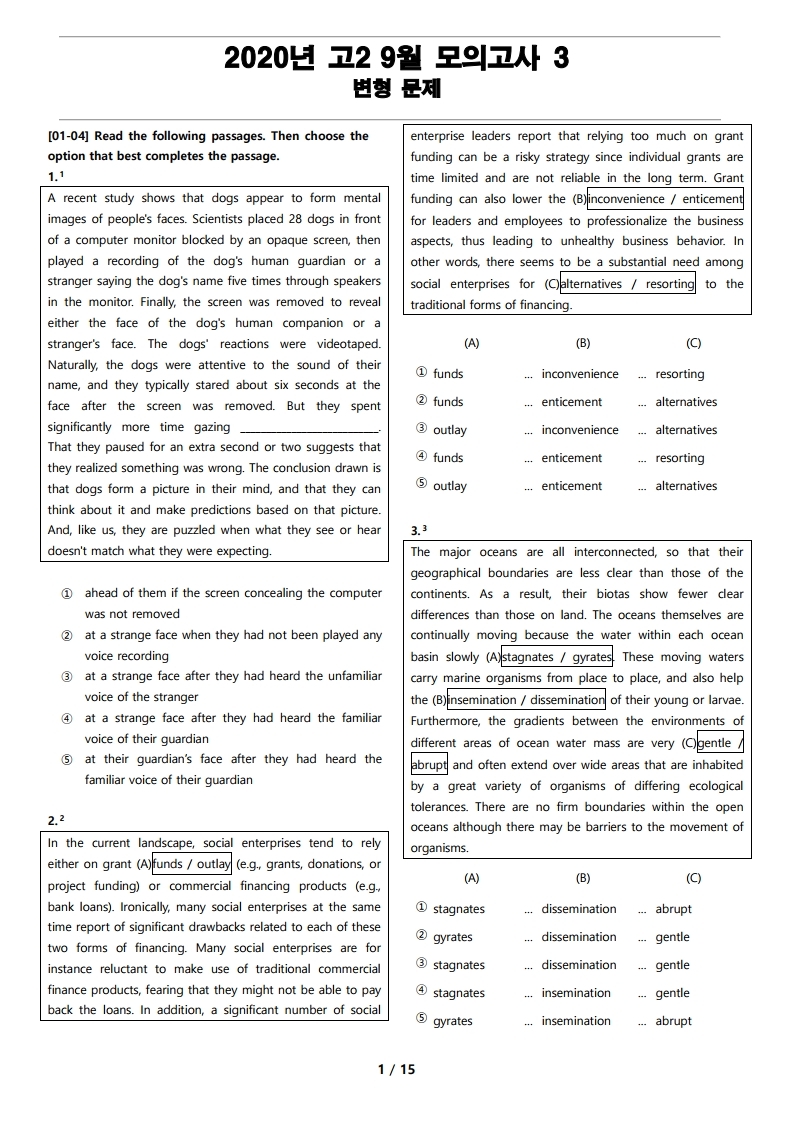 2020년 고2 9월 전국 연합 모의고사 변형 문제, 내신대비, 영어내신자료,고등영어자료, 모의고사 변형문제,전국 연합모의고사 변형자료, 모의고사 영어 서술형 대비, 대치동 고등 영어자료, 대치��
