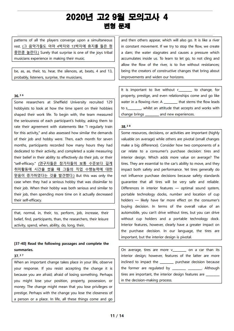 2020년 고2 9월 전국 연합 모의고사 변형 문제, 내신대비, 영어내신자료,고등영어자료, 모의고사 변형문제,전국 연합모의고사 변형자료, 모의고사 영어 서술형 대비, 대치동 고등 영어자료, 대치��