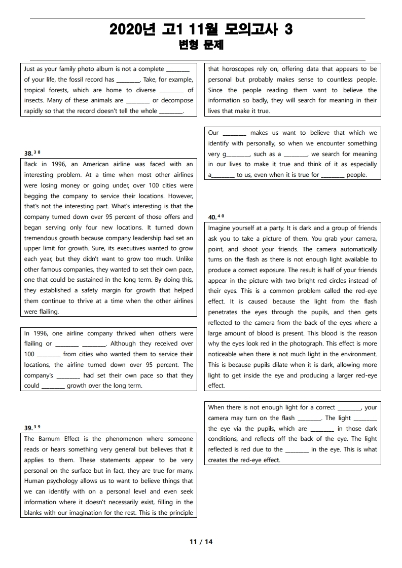 2020년 고1 11월 전국 연합 모의고사 변형 문제, 내신대비, 영어내신자료,고등영어자료, 모의고사 변형문제,전국 연합모의고사 변형자료, 모의고사 영어 서술형 대비, 대치동 고등 영어자료, 대치