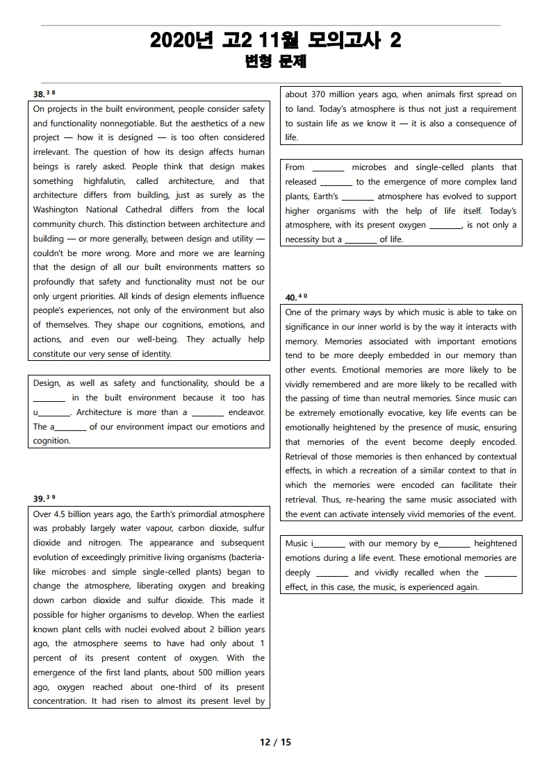 2020년 고2 11월 전국 연합 모의고사 변형 문제, 내신대비, 영어내신자료,고등영어자료, 모의고사 변형문제,전국 연합모의고사 변형자료, 모의고사 영어 서술형 대비, 대치동 고등 영어자료, 대치