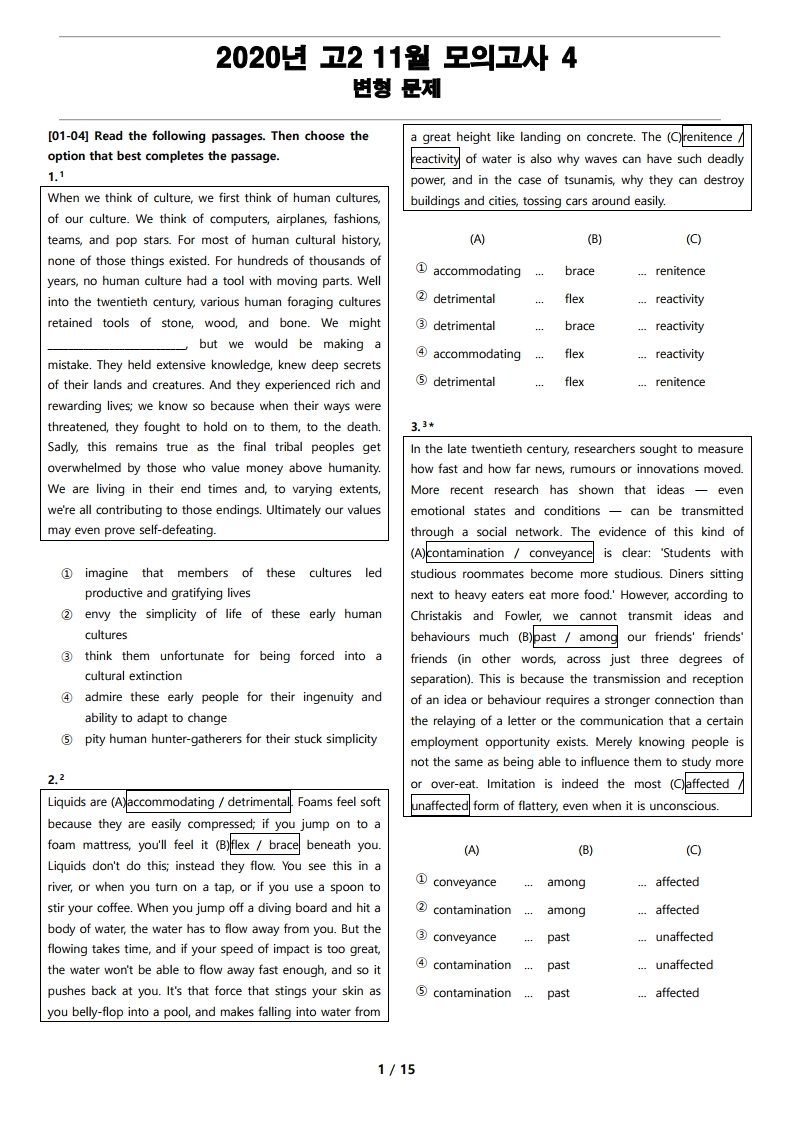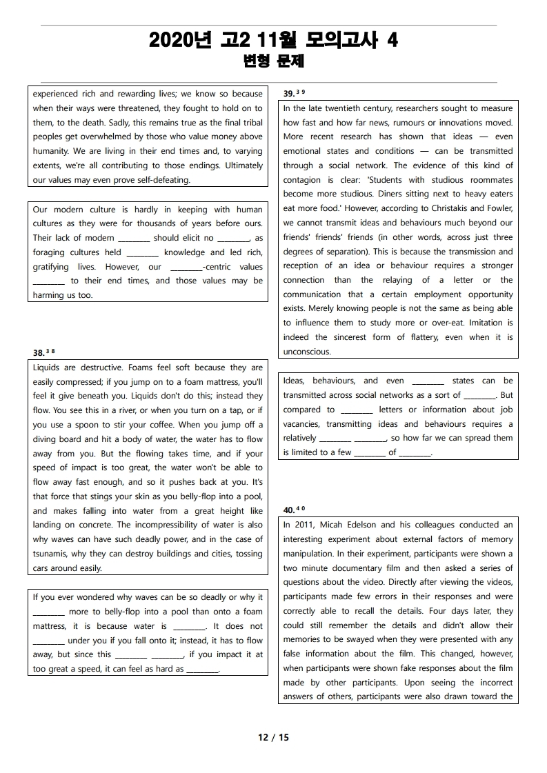2020년 고2 11월 전국 연합 모의고사 영어 변형 문제의 지문입니다.