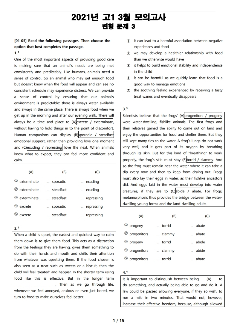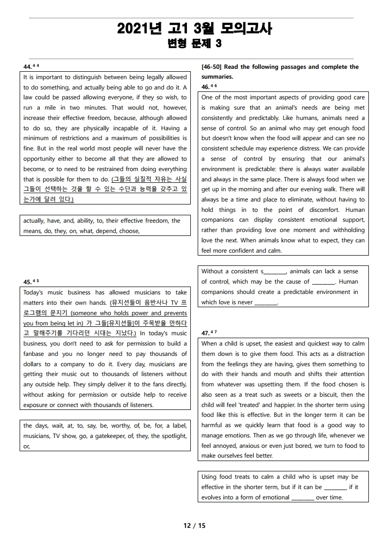 2021년 고1 3월 전국 연합 모의고사 변형 문제 3의 지문입니다.