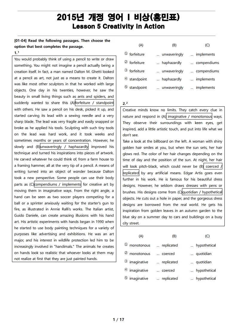 2015년 개정 영어 I 비상(홍민표) 5과 변형 문제를 선보입니다.