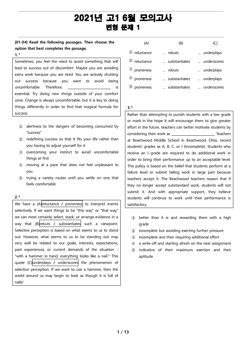 2021년 고1 6월 전국 연합 모의고사 변형 문제 1