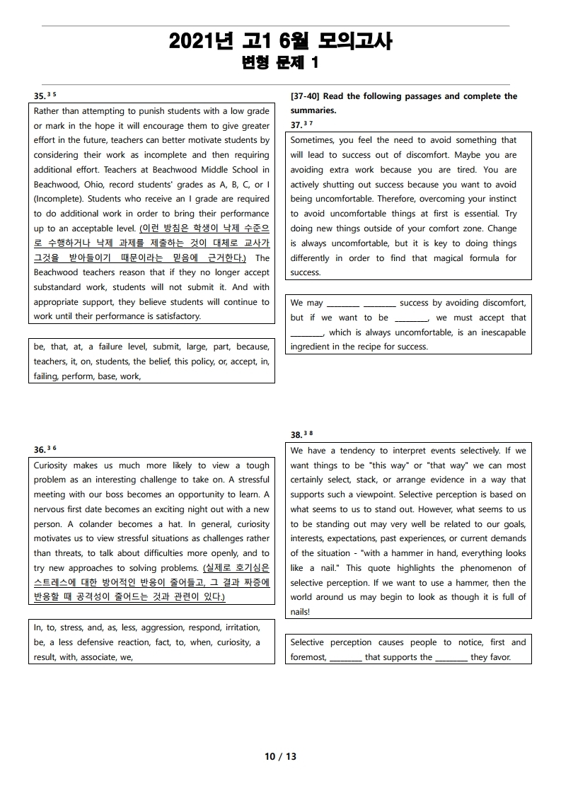 The Makings의 2021년 고1 6월 전국 연합 모의고사 변형 문제는