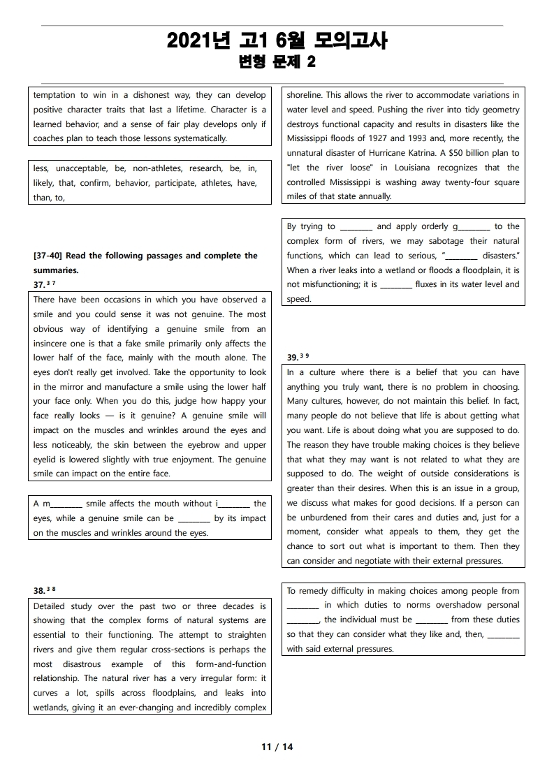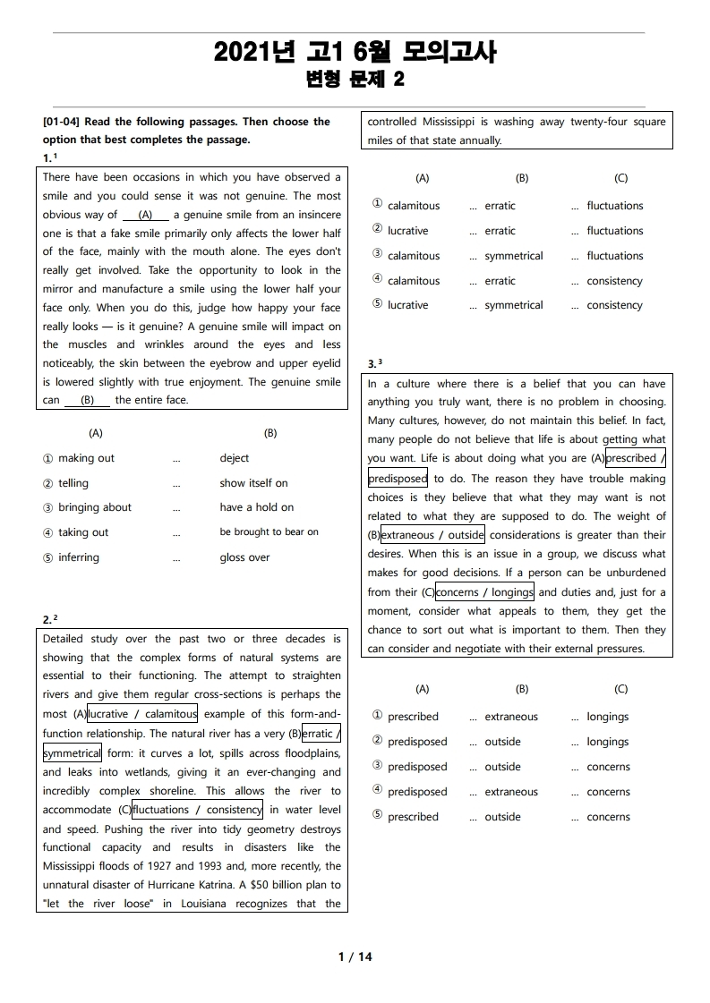 2021년 고1 6월 전국 연합 모의고사 변형 문제 2의 지문입니다.