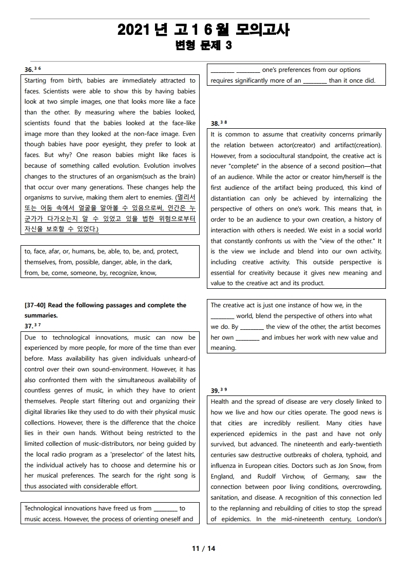 최상의 2021년 고1 6월 전국 연합 모의고사 변형 문제 3 를 선보입니다.