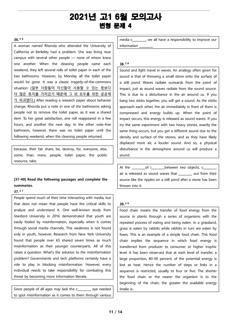 10. 요약문 완성하기(서술형)