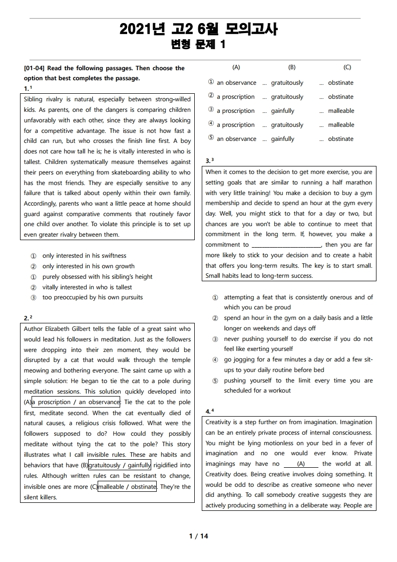 2021년 고2 6월 전국 연합 모의고사 변형 문제 1