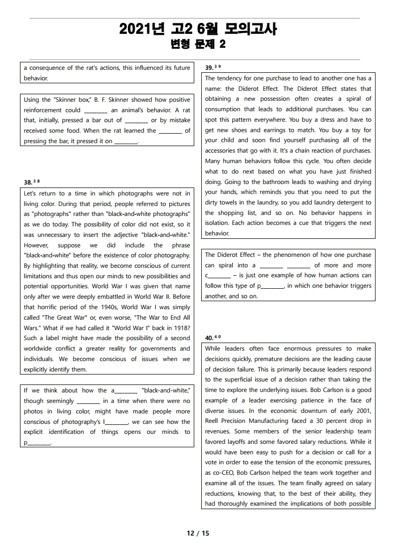 2021년 고2 6월 전국 연합 모의고사 변형 문제 2