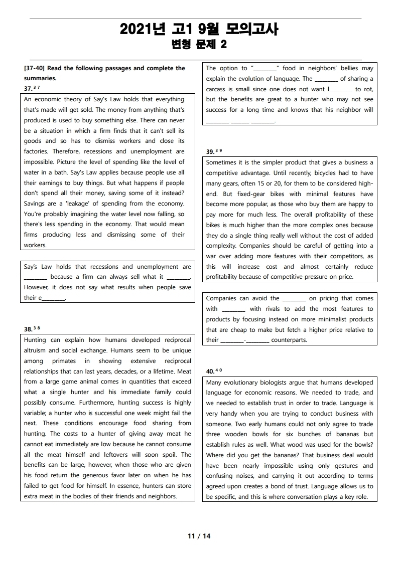2021년 고1 9월 전국 연합 모의고사 변형 문제 2