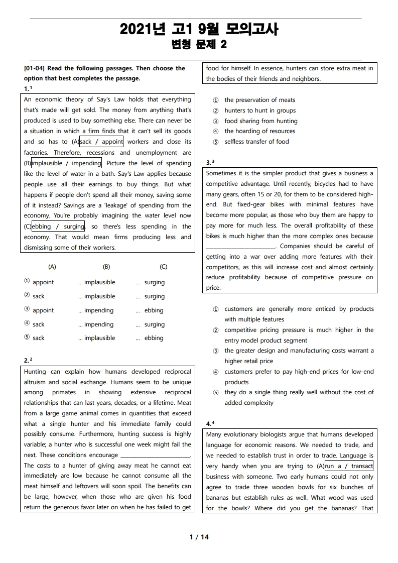 2021년 고1 9월 전국 연합 모의고사 변형 문제 2 를 선보입니다.