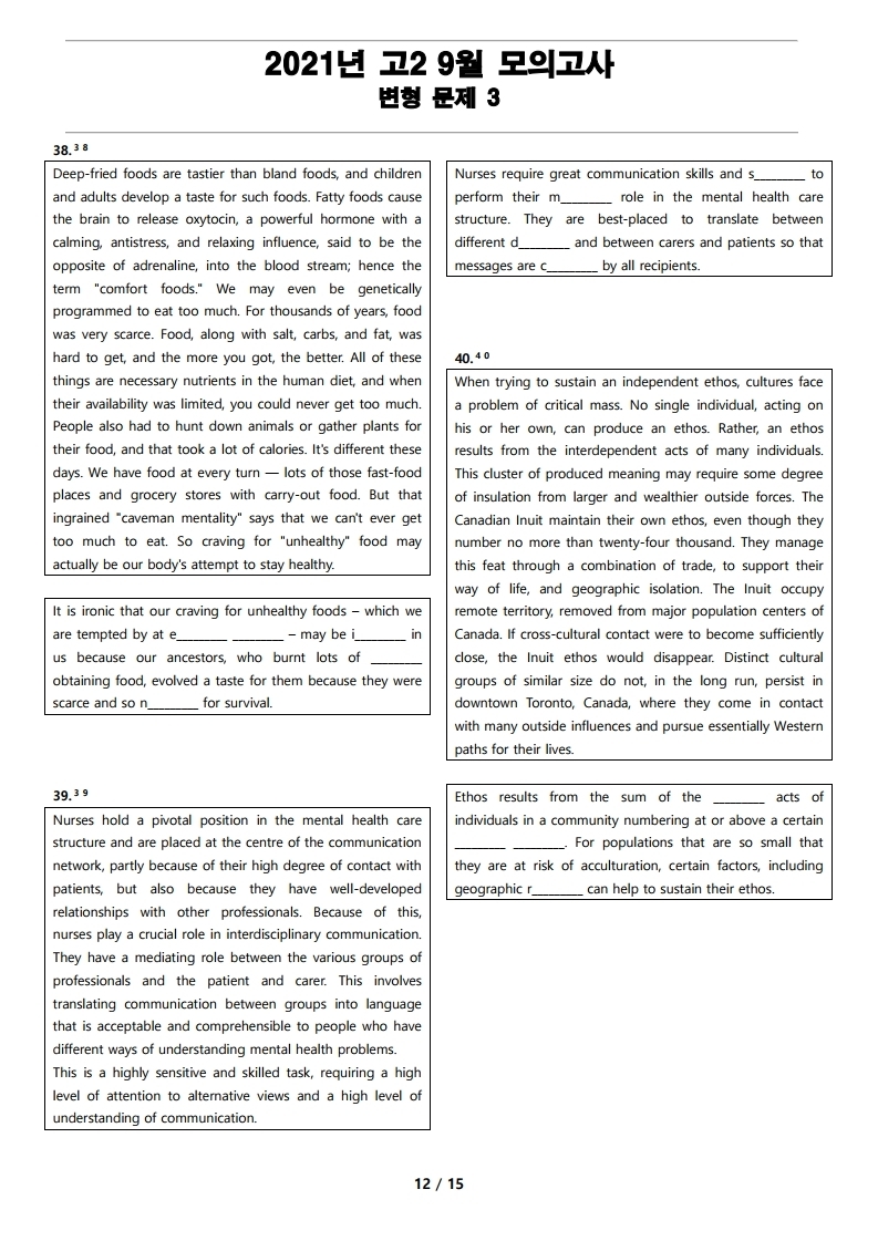 2021년 고2 9월 전국 연합 모의고사 변형 문제, 내신대비, 영어내신자료,고등영어자료, 모의고사 변형문제,전국 연합모의고사 변형자료, 모의고사 영어 서술형 대비, 대치동 고등 영어자료, 대치