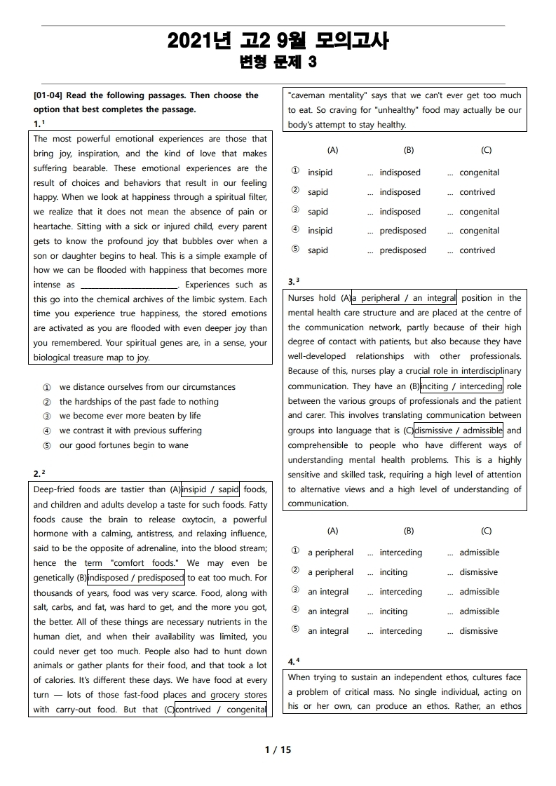 2021년 고2 9월 전국 연합 모의고사 변형 문제 3 을 선보입니다.