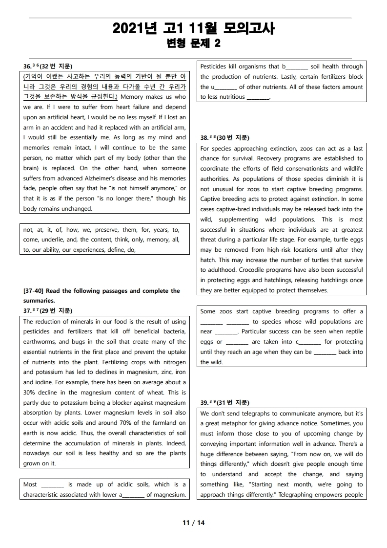 2021년 고1 11월 전국 연합 모의고사 변형 문제, 내신대비, 영어내신자료,고등영어자료, 모의고사 변형문제,전국 연합모의고사 변형자료, 모의고사 영어 서술형 대비, 대치동 고등 영어자료, 대치
