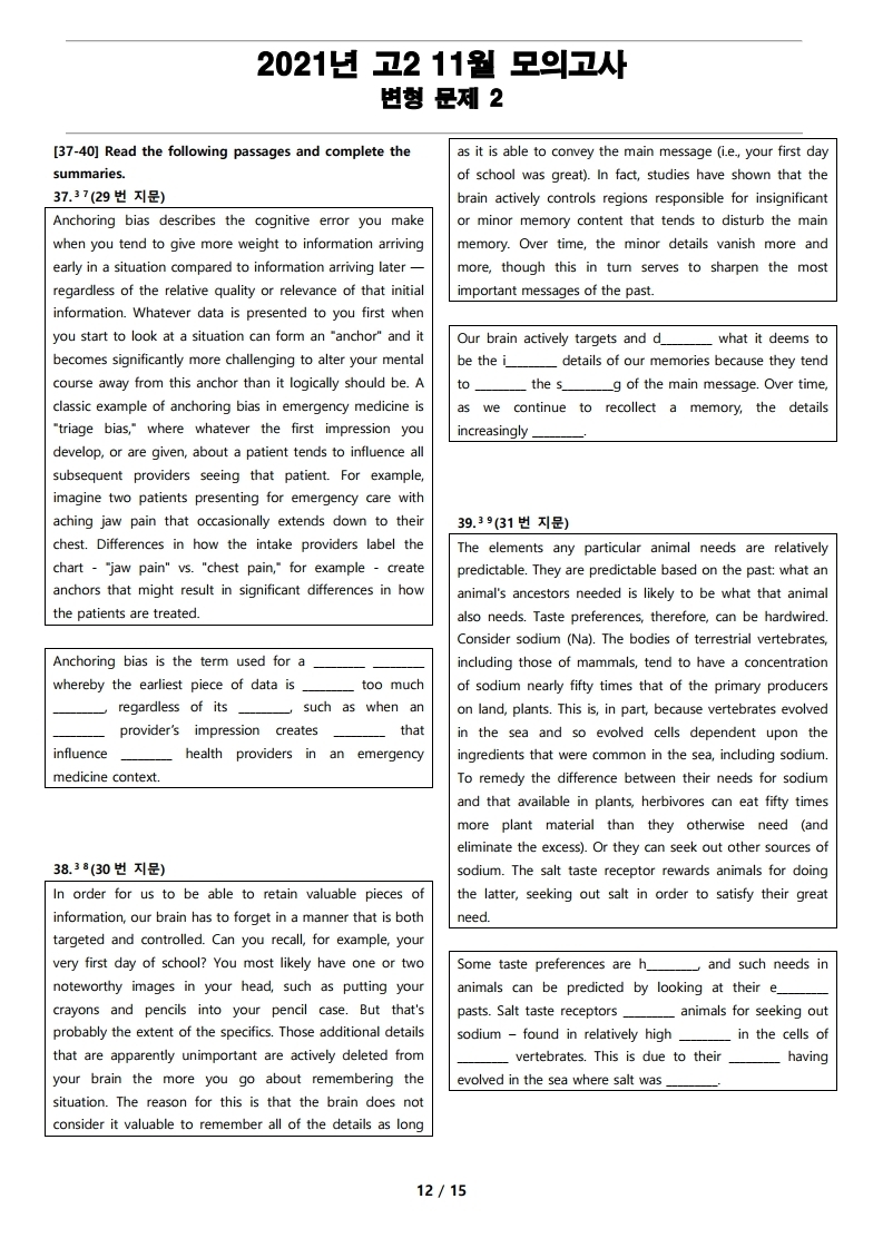 2021년 고2 11월 전국 연합 모의고사 변형 문제, 내신대비, 영어내신자료,고등영어자료, 모의고사 변형문제,전국 연합모의고사 변형자료, 모의고사 영어 서술형 대비, 대치동 고등 영어자료, 대치