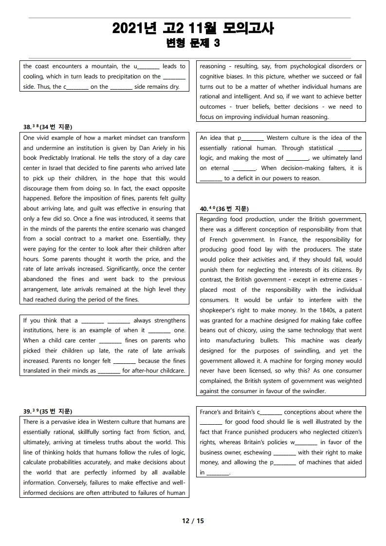 2021년 고2 11월 전국 연합 모의고사 변형 문제, 내신대비, 영어내신자료,고등영어자료, 모의고사 변형문제,전국 연합모의고사 변형자료, 모의고사 영어 서술형 대비, 대치동 고등 영어자료, 대치