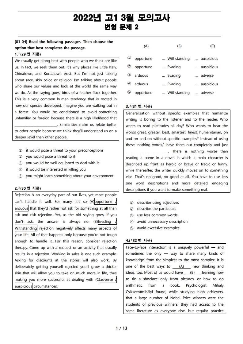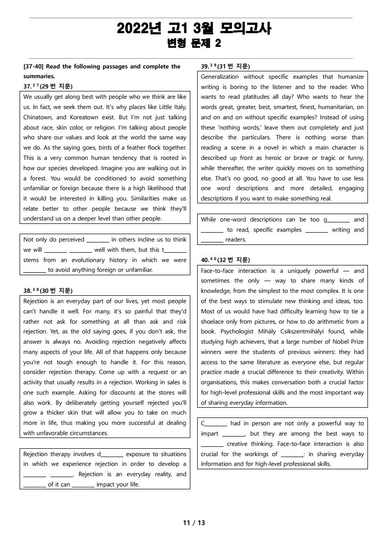 2022년 고1 3월 전국 연합 모의고사 변형 문제, 내신대비, 영어내신자료,고등영어자료, 모의고사 변형문제,전국 연합모의고사 변형자료, 모의고사 영어 서술형 대비, 대치동 고등 영어자료, 대치
