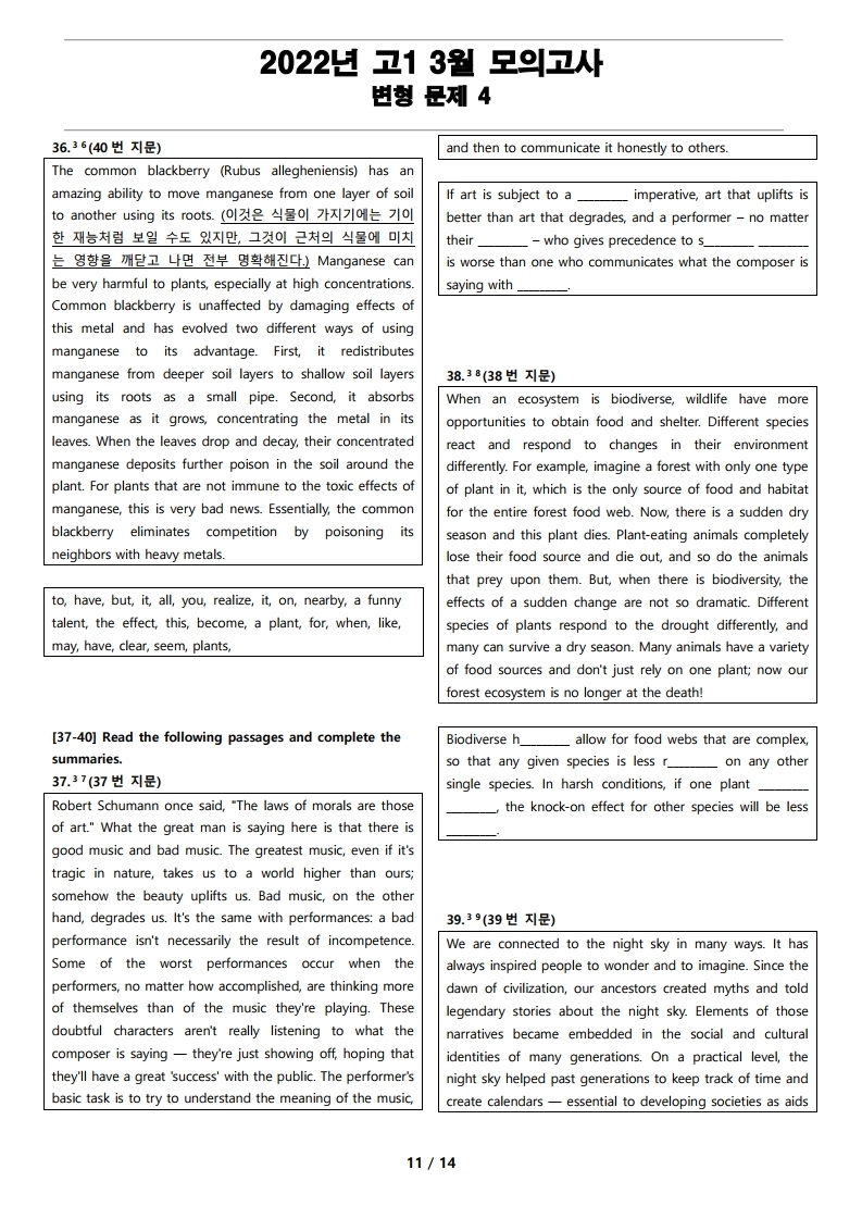 2022년 고1 3월 전국 연합 모의고사 변형 문제, 내신대비, 영어내신자료,고등영어자료, 모의고사 변형문제,전국 연합모의고사 변형자료, 모의고사 영어 서술형 대비, 대치동 고등 영어자료, 대치