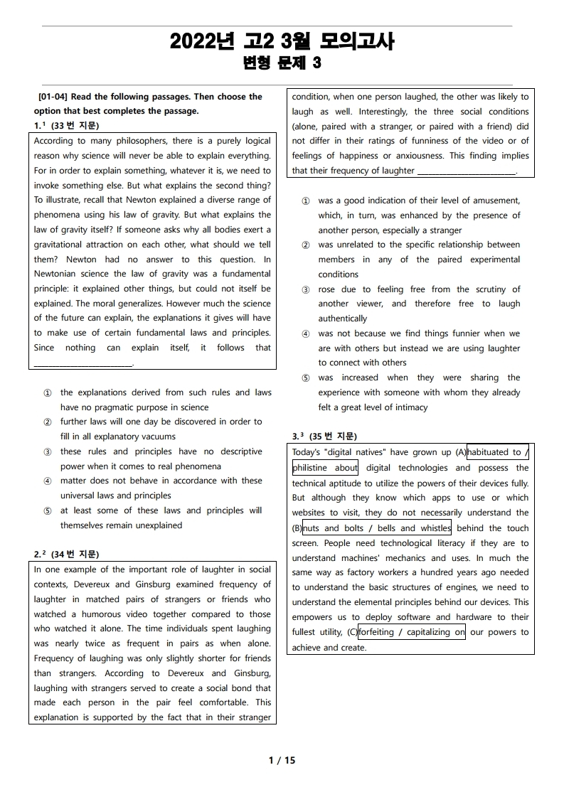 2022년 고2 3월 전국 연합 모의고사 변형 문제 3의 지문입니다.