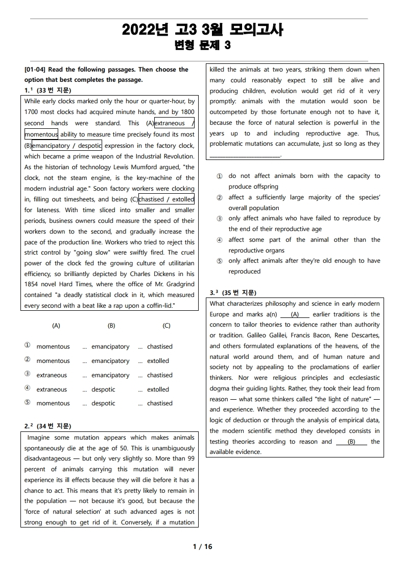 2022년 고3 3월 전국 연합 모의고사 변형 문제 3 을 선보입니다.