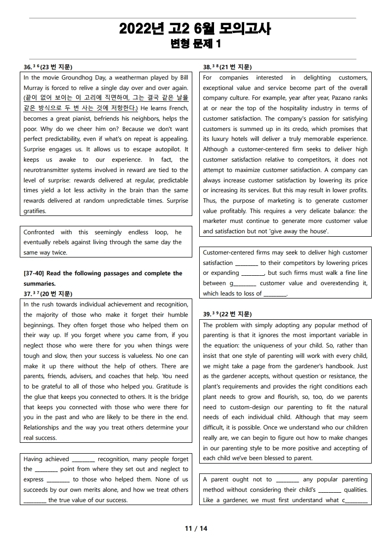 2022년 고2 6월 전국 연합 모의고사 변형 문제, 내신대비, 영어내신자료,고등영어자료, 모의고사 변형문제,전국 연합모의고사 변형자료, 모의고사 영어 서술형 대비, 대치동 고등 영어자료, 대치