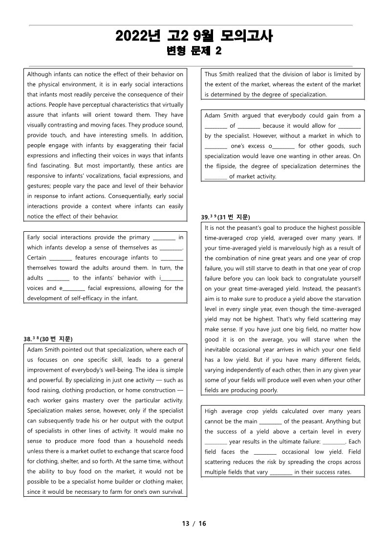 2022년 고2 9월 전국 연합 모의고사 변형 문제, 내신대비, 영어내신자료,고등영어자료, 모의고사 변형문제,전국 연합모의고사 변형자료, 모의고사 영어 서술형 대비, 대치동 고등 영어자료, 대치