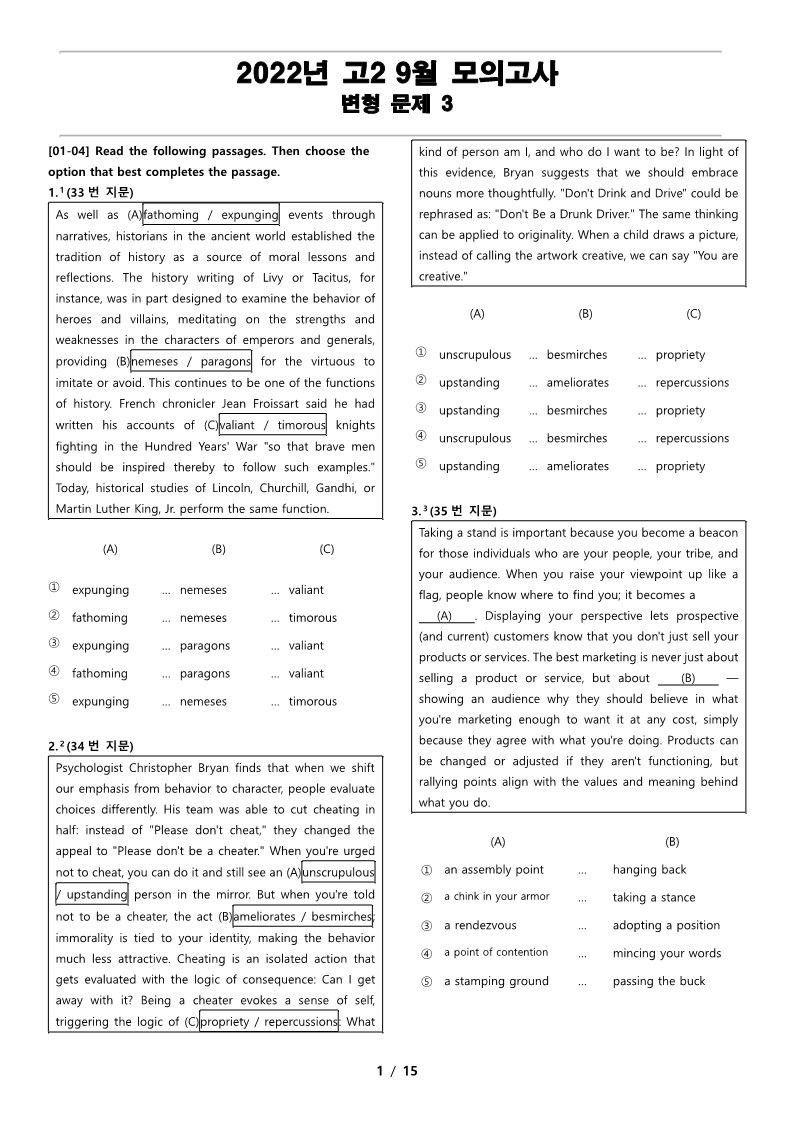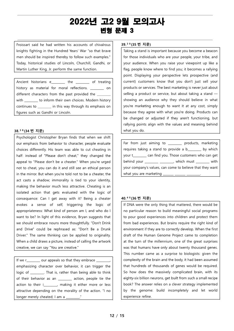 2022년 고2 9월 전국 연합 모의고사 변형 문제, 내신대비, 영어내신자료,고등영어자료, 모의고사 변형문제,전국 연합모의고사 변형자료, 모의고사 영어 서술형 대비, 대치동 고등 영어자료, 대치