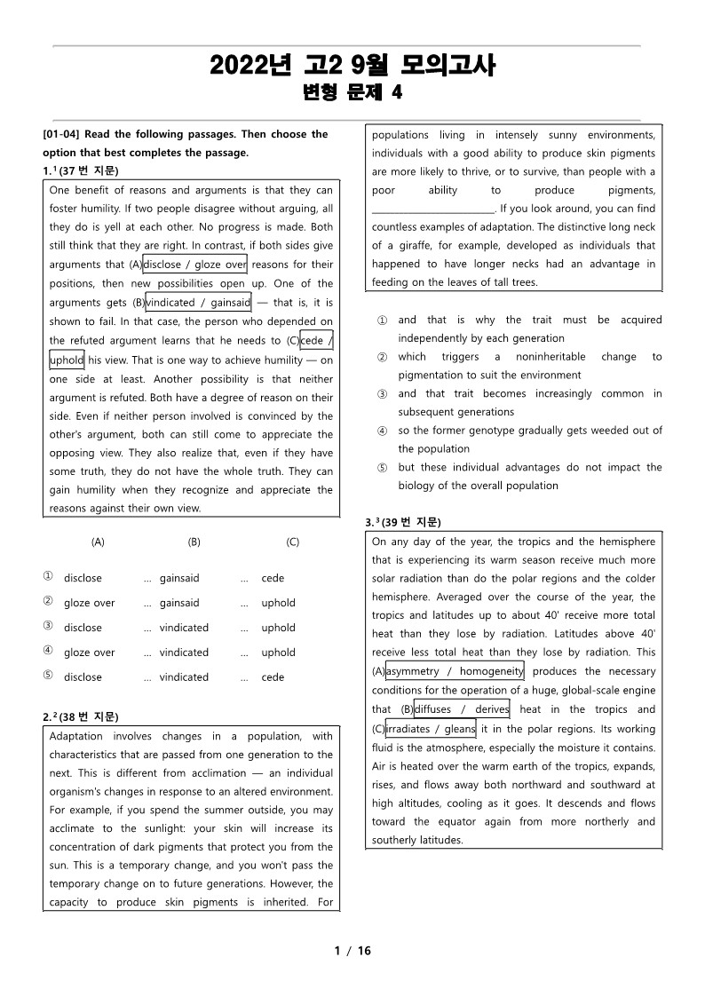 최상의 2022년 고2 9월 전국 연합 모의고사 변형 문제 4 를 선보입니다.