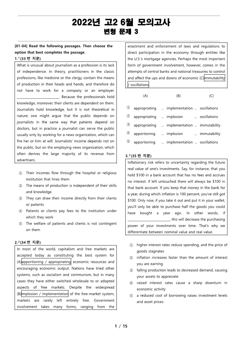 1번 지문(문항 번호 33번)