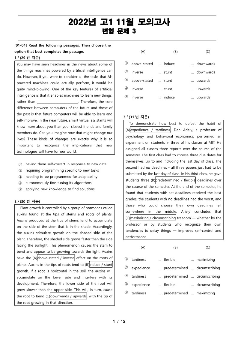 2022년 고1 11월 전국 연합 모의고사 변형 문제 3 을 선보입니다.