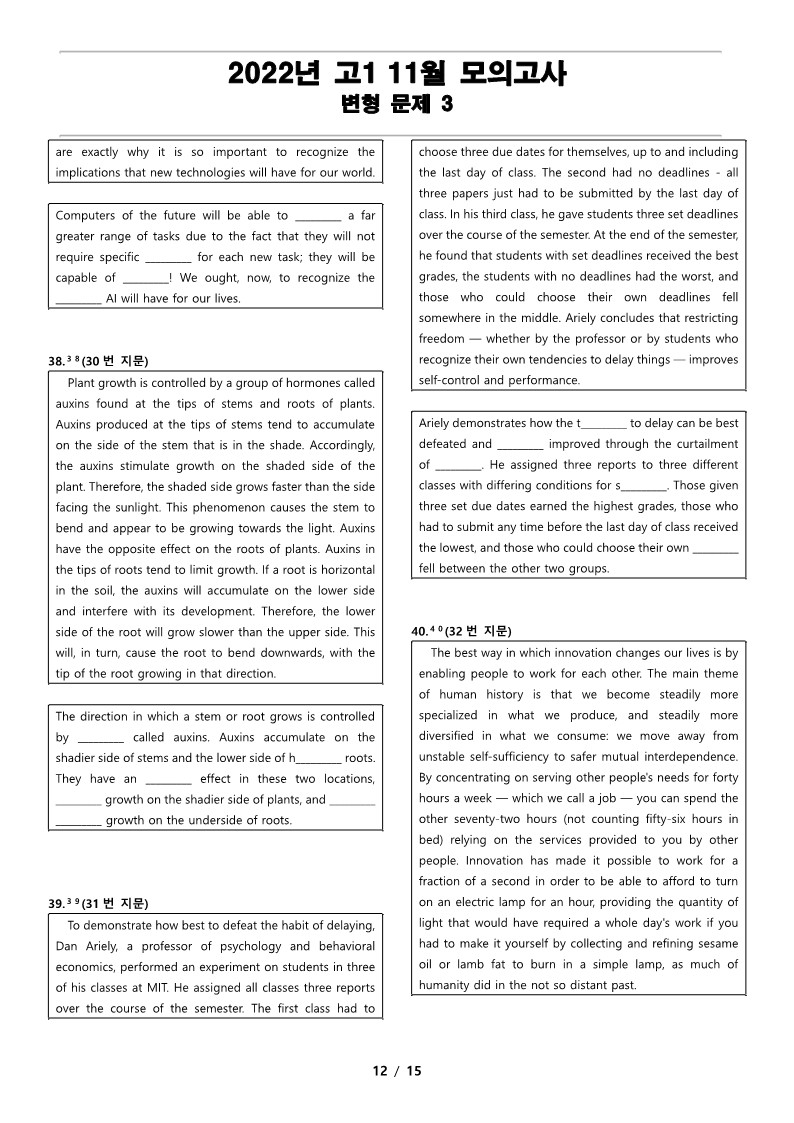 2022년 고1 11월 전국 연합 모의고사 변형 문제, 내신대비, 영어내신자료,고등영어자료, 모의고사 변형문제,전국 연합모의고사 변형자료, 모의고사 영어 서술형 대비, 대치동 고등 영어자료, 대치