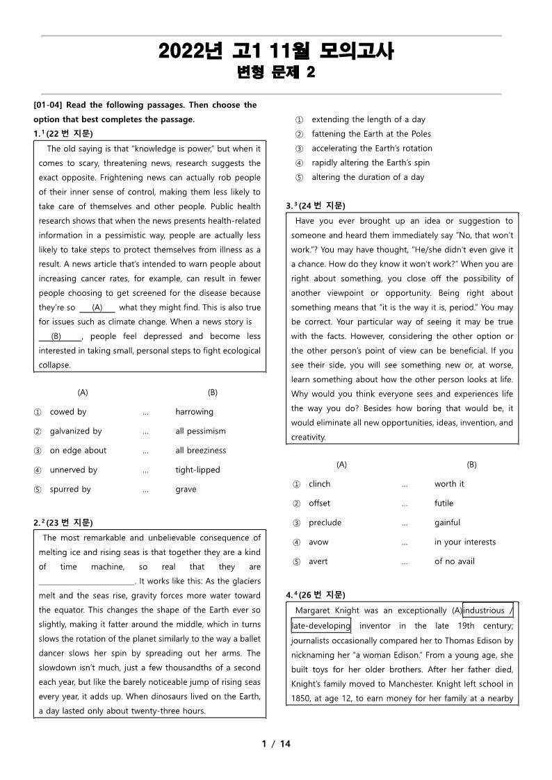 더메이킹스(The Makings)가 제작한 2022년 고1 11월 전국 연합 모의고사 변형 문제 2의 지문입니다.