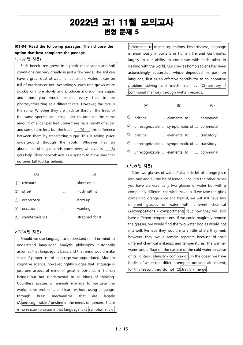 2022년 고1 11월 전국 연합 모의고사 변형 문제 1