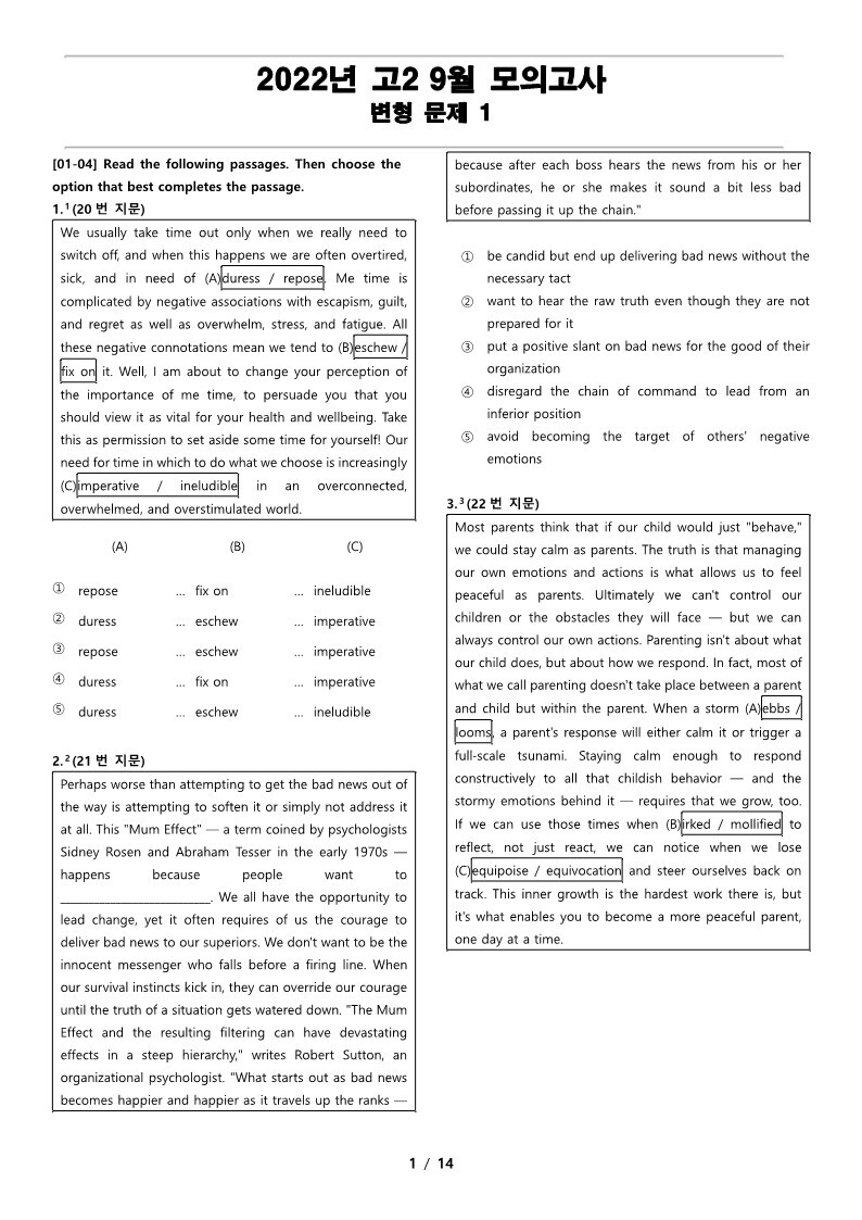 2022년 고2 9월 전국 연합 모의고사 변형 문제 1의 지문입니다.