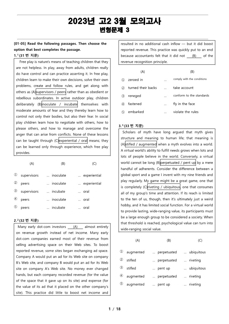 최상의 2023년 고2 3월 전국 연합 모의고사 변형 문제 3 을 선보입니다.