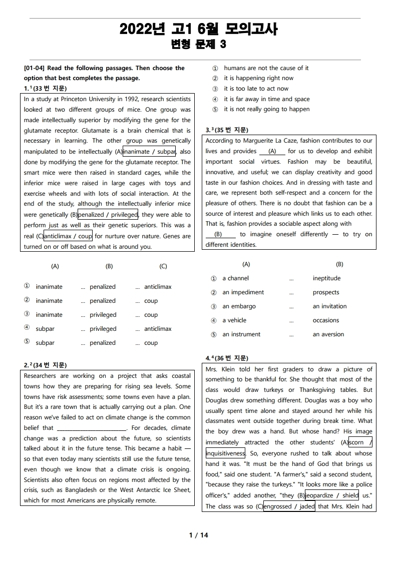 2022년 고1 6월 전국 연합 모의고사 변형 문제 3의 지문입니다.