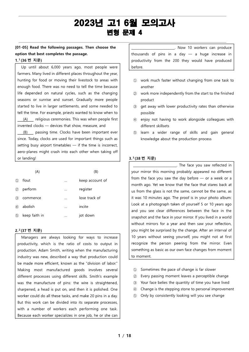 2023년 고1 6월 전국 연합 모의고사 변형 문제, 내신대비, 영어내신자료,고등영어자료, 모의고사 변형문제,전국 연합모의고사 변형자료, 모의고사 영어 서술형 대비, 대치동 고등 영어자료, 대치