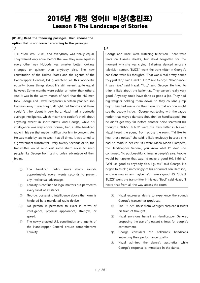 2015년 개정 영어 II 비상(홍민표) 6과 변형 문제 The Landscape of Stories