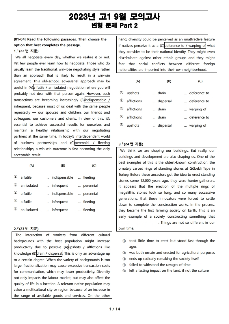 2023년 고1 9월 전국 연합 모의고사 변형 문제 Part 2