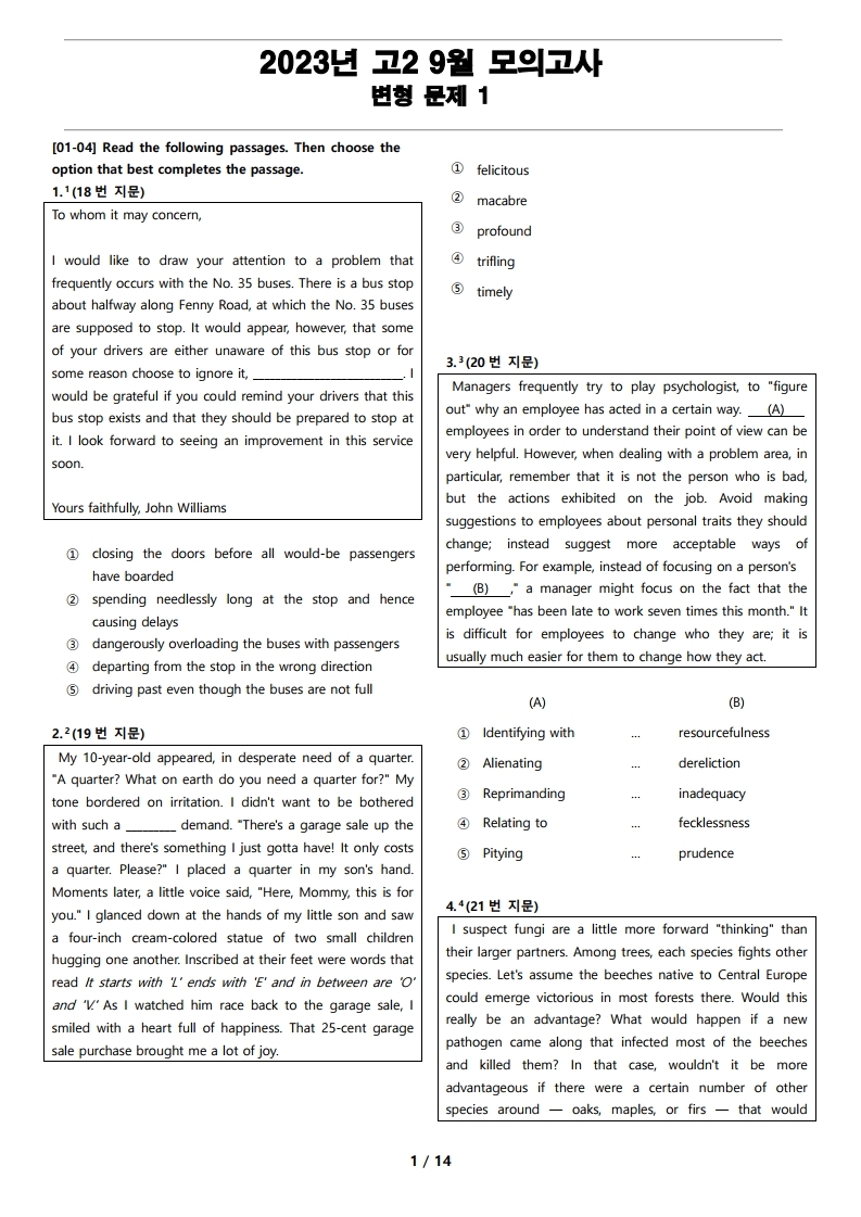2023년 고2 9월 전국 연합 모의고사 변형 문제 Part 1의 지문입니다.