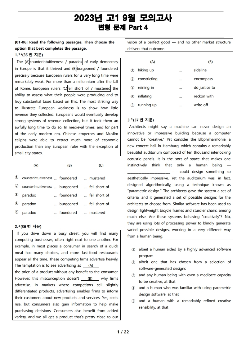 2023년 고2 9월 전국 연합 모의고사 변형 문제 Part 4