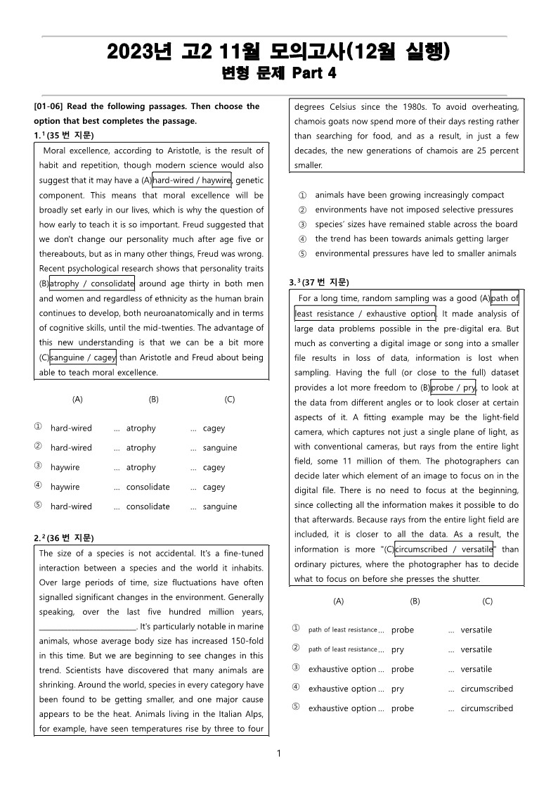 2023년 고2 11월(12월 시행) 전국 연합 모의고사 변형 문제 Part 4 (66문항) (PDF)