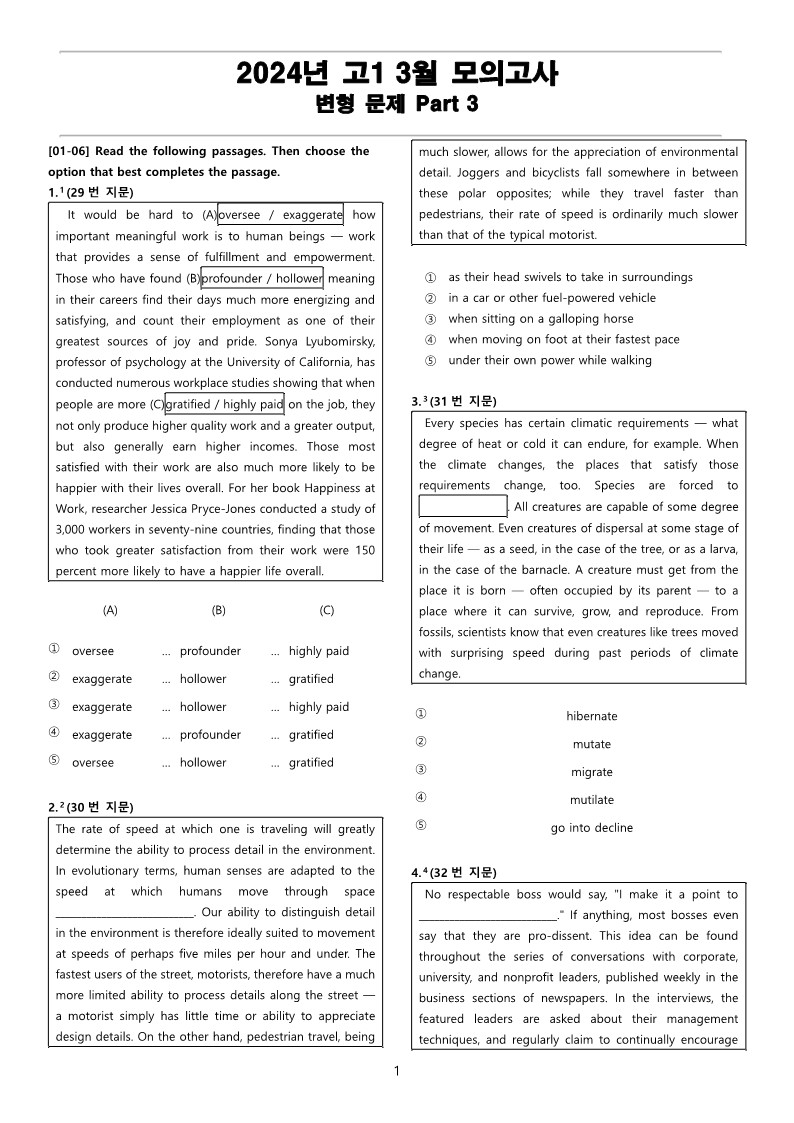 2024년 고1 3월 전국 연합 모의고사 변형 문제 Part 3 을 선보입니다.