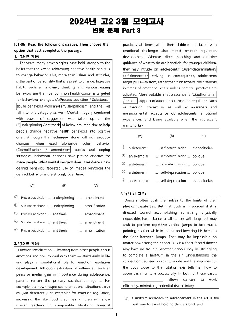 2024년 고2 3월 전국 연합 모의고사 변형 문제 Part 3 을 선보입니다.