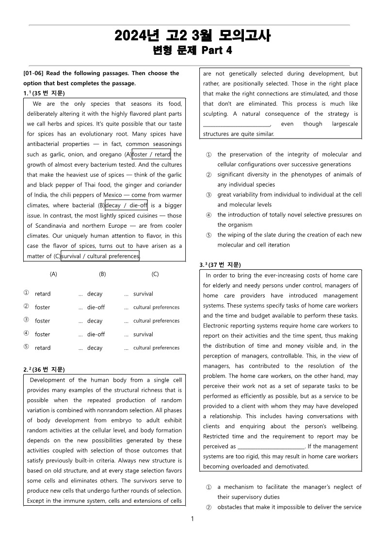 2024년 고2 3월 전국 연합 모의고사 변형 문제 Part 4의 지문입니다.