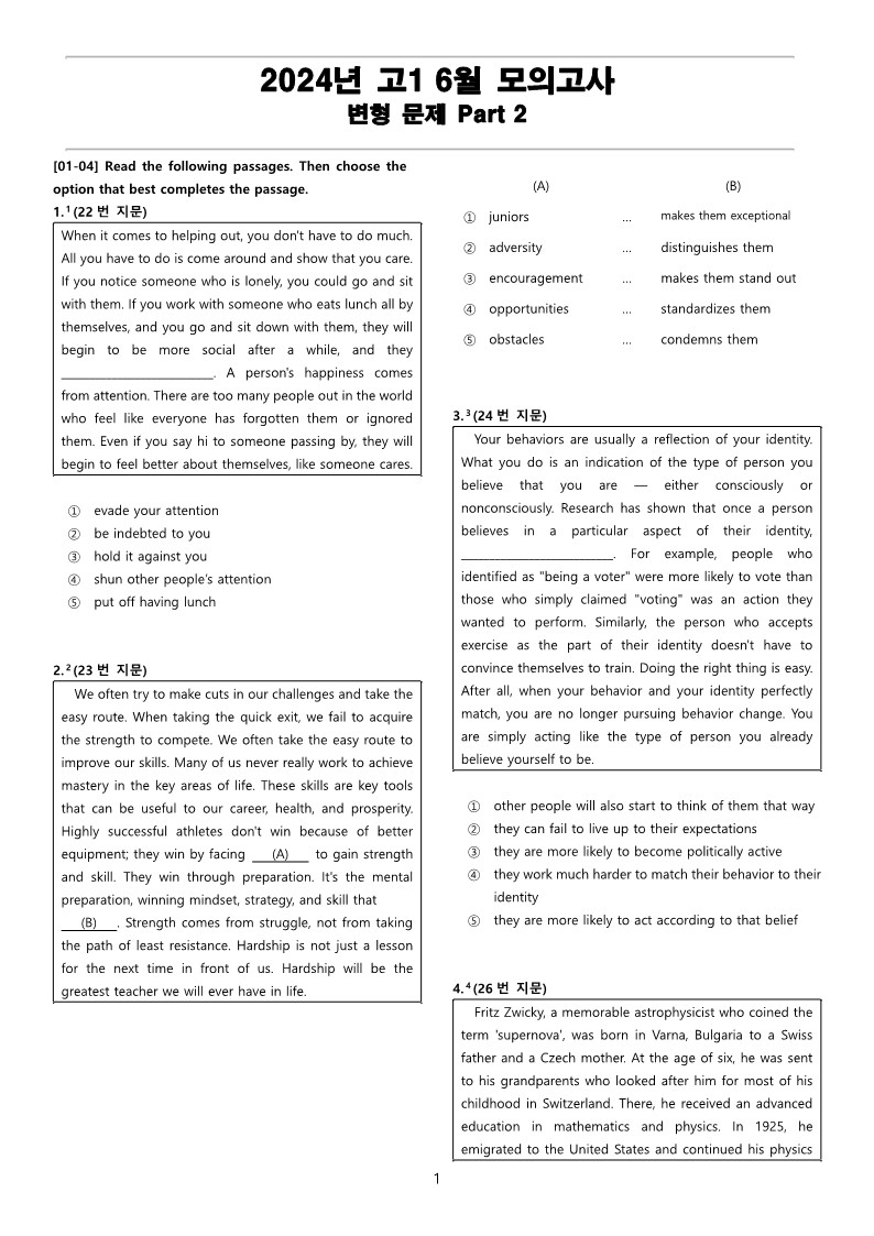 2024년 고1 6월 전국 연합 모의고사 변형 문제 Part 2_PDF