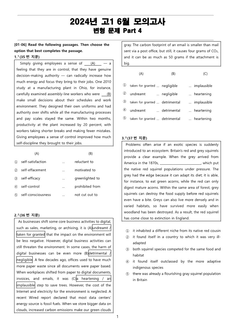 2024년 고1 6월 전국 연합 모의고사 변형 문제 Part 4_PDF